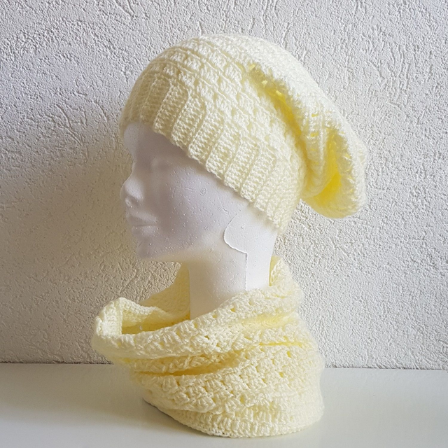 Ensemble bonnet et snood fait mains en taille unique pour homme et/ou femme. Coton et polyester