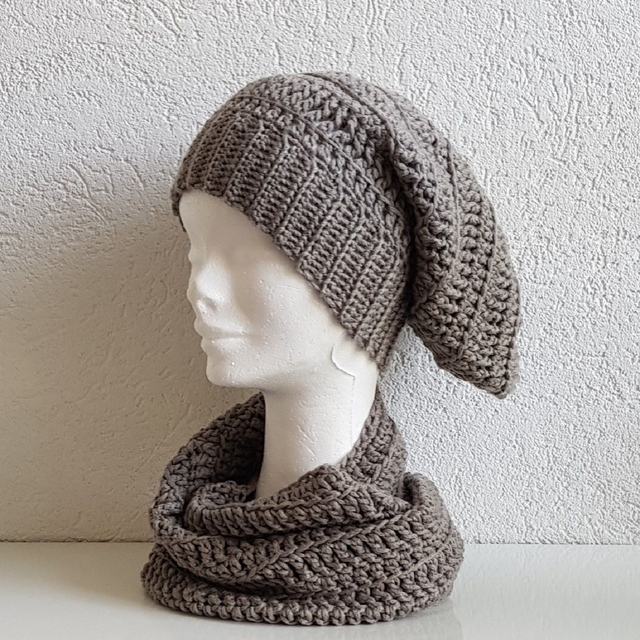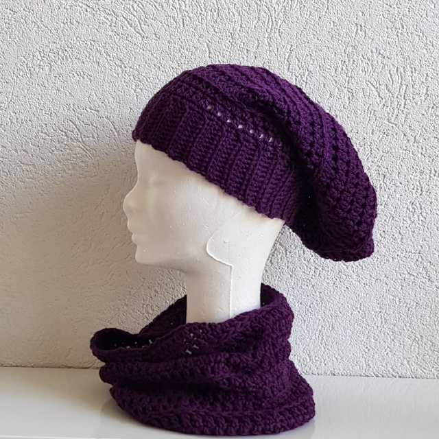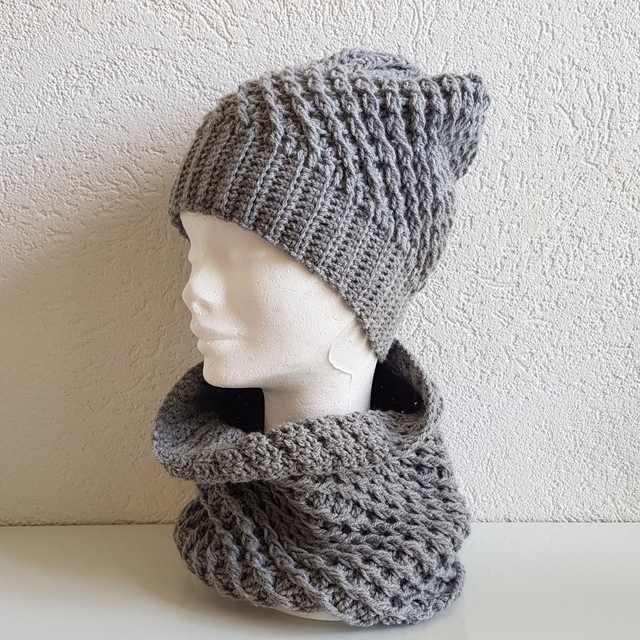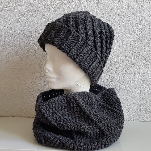 Ensemble bonnet et snood fait mains en taille unique pour homme et/ou femme. Coton et polyester